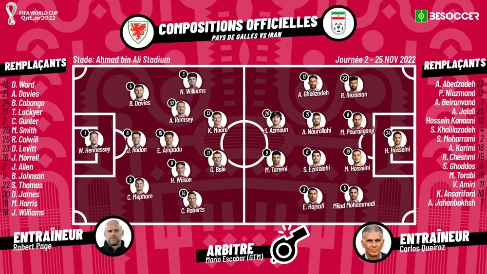 Surclassé par lAngleterre lors de la première journée lIran sest imposé 2-0 face au Pays de Galles ce vendredi grâce à deux buts de Roozbeh Cheshmi et Ramin Rezaeian dans les. Pays de Galles vs Iran 2022-11-25 flux en direct conseils cotes et statistiques H2H. Pronostic Pays de Galles Iran du 25112022 en Coupe du Monde - Découvrez les pronostics les statistiques les compos et les meilleures cotes pour le match de Football.